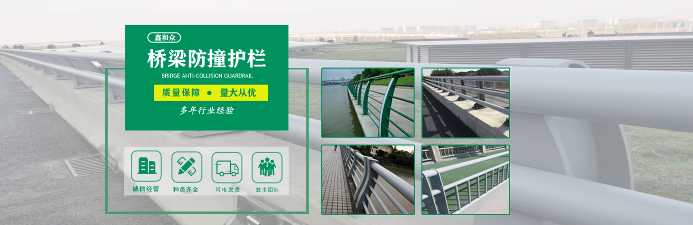 山東鑫和眾金屬制品有限公司主要產(chǎn)品有防撞護(hù)欄,橋梁護(hù)欄,道路護(hù)欄,河道護(hù)欄,不銹鋼護(hù)欄等護(hù)欄。提供設(shè)計(jì)方案,一站式定制,包您滿意價(jià)格優(yōu)惠,歡迎來電咨詢!    公司常年從事銷售護(hù)欄防撞護(hù)欄,橋梁護(hù)欄,道路護(hù)欄,河道護(hù)欄,不銹鋼護(hù)欄,橋梁鋼護(hù)欄,河道燈光護(hù)欄等。產(chǎn)品廣泛應(yīng)用于橋梁、河道、旅游景區(qū)、道路、公路、公園、小區(qū)、景觀、道路防撞等領(lǐng)域。    公司產(chǎn)品均采用優(yōu)質(zhì)不銹鋼材料,符合相關(guān)標(biāo)準(zhǔn)。各種型號(hào)不銹鋼復(fù)合管及護(hù)欄,質(zhì)量嚴(yán)格把控。產(chǎn)品強(qiáng)度高、耐腐蝕、焊接牢固、抗沖擊、性能好,防撞護(hù)欄結(jié)構(gòu)簡單、美觀實(shí)用大方。     歡迎前來訂購!...